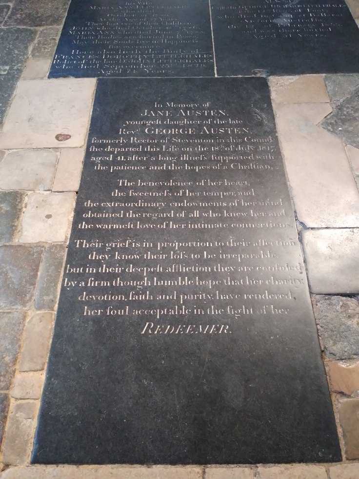 As I continued through these chapters, though, the inevitable became known to the Austens. James Austen, Jane’s eldest brother, wrote to his son at Oxford “My dear Edward, – I grieve to write what you will grieve to read…” though this letter was not the notice of her death, only that her death was understood to be imminent. “Mr. Lyford [Jane’s doctor],” he continues, “has candidly told us that her case is desperate” and that Jane was “well aware of her situation” (Wm. Austen-Leigh 210). As he ends the letter, he confirms a plan to travel to Winchester the following day and warns his son to “prepare yourself for what the next letter may announce” (Wm. Austen-Leigh 210). In these letters, we feel the deep pain of these family members as they await her death. I cried, Dear Reader, just as I have every time I have read these chapters. There is so much love within this family, and it is at least comforting to know that Jane died amidst all this love.
